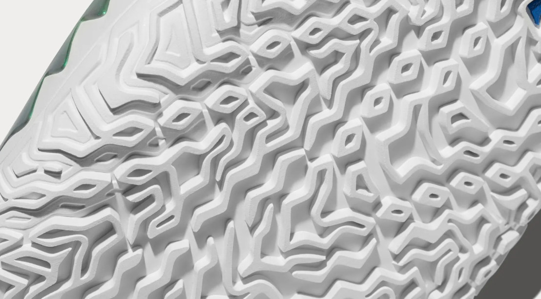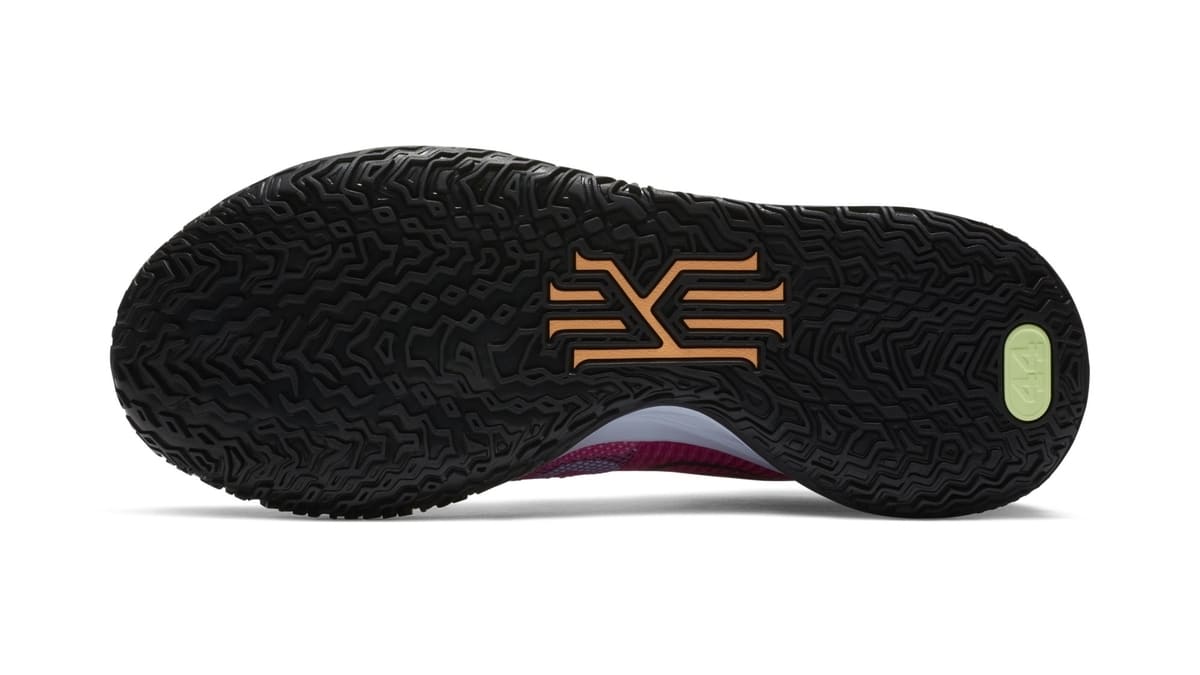 L’amorti Zoom Turbo est repris comme sur les Kyrie 5 et 6, s’articulant sous l’avant du pied pour assurer des bons appuis multidirectionnel, plutôt qu’un retour d’énergie vertical. L’apport est moins perceptible mais tout aussi précieux pour ceux qui ont besoin de court feel. L’imposante mousse du talon incurvée, en phylon, assure quant à elle l’absorption des chocs à l’arrière, comme sur les précédents modèles.