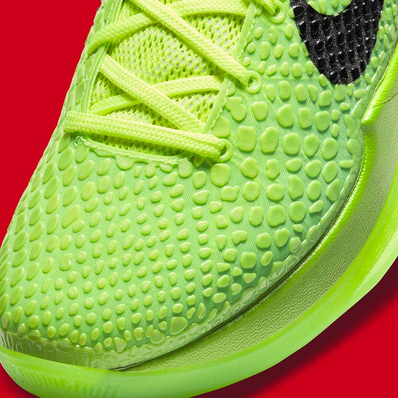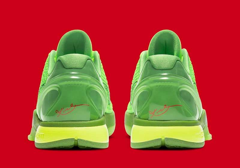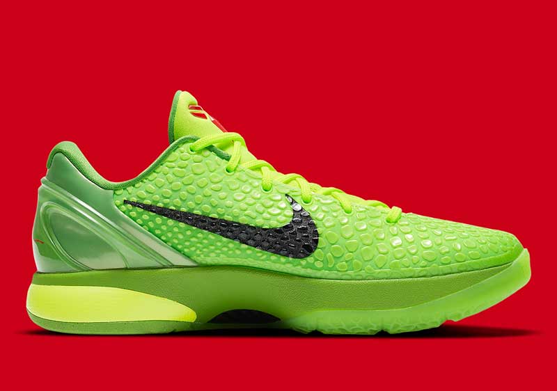 Du côté des couleurs, rien de change. Le vert du Grinch est toujours là, toujours aussi éclatant. Les écailles caractéristiques de la Kobe 6 sont aussi de retour. Et ce n’est qu’un début. Les coloris devraient pleuvoir en 2021.