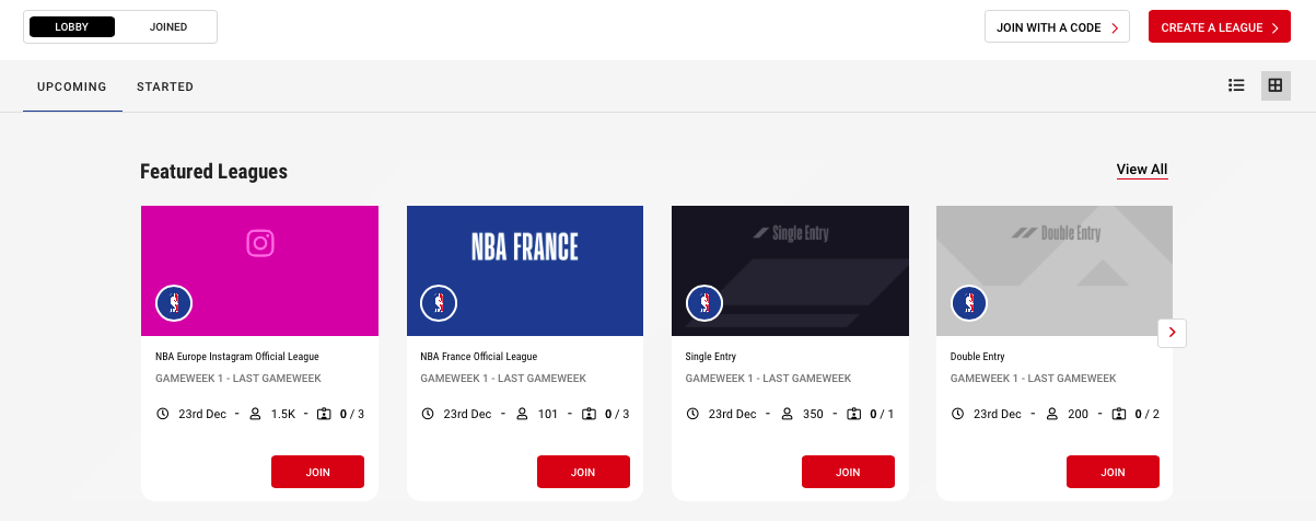 Une fois votre équipe composée, vous intégrerez automatiquement trois ligues : celle générale, celle de votre pays et celle de votre franchise préférée. Vous pourrez ensuite créer votre propre ligue ou en rejoindre une déjà existante en cliquant sur le menu « Leagues ».