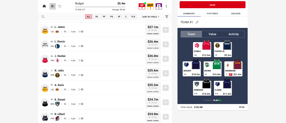 – Composez avant mardi soir votre équipe de sept joueurs (cinq titulaires + deux remplaçants, avec un capitaine) en respectant le budget de 100 millions de dollars,