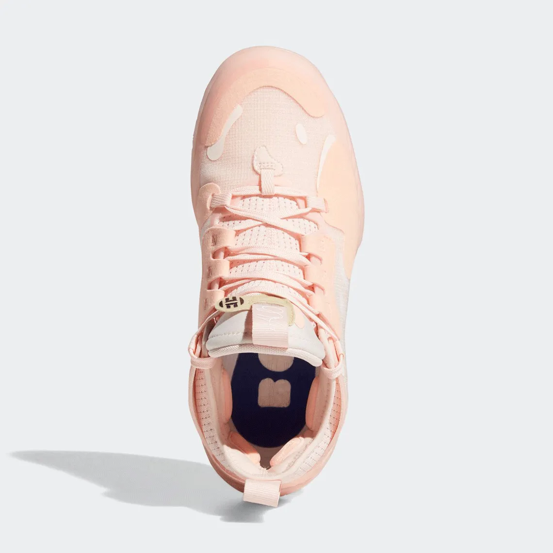 Depuis leur arrivée, les Harden Vol.5 ont été aperçues en blanc et en rouge, avec à chaque fois ces empiècements colorés qui rappellent une palette de peinture. Ce sera le cas aussi sur une version noire dévoilée par adidas, mais pas sur l'édition « Icy Pink » vue chez Sneaker News, qui offre un coloris uni allant du chair au coquille d'oeuf.