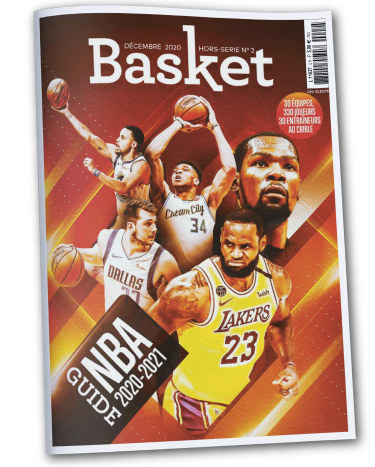 Que serait une saison NBA sans un guide avec tous les joueurs, tous les coaches, le calendrier, les prévisions… ? Pour la version papier, notre préféré, c’est Le Guide de la saison NBA 2020/21 édité par Basket Le Mag. C’est le digne successeur des guides des feus MVP et Mondial Basket, et c’est donc ce magazine qui va traîner pendant huit mois près du canapé ou du bureau, et qu’on ouvrira pour vérifier la taille d’un joueur, l’origine d’un nom d’équipe, l’affluence d’une salle ou encore le bilan d’une franchise depuis dix ans. C’est complet et indispensable, et il fait 82 pages. Une coïncidence ?