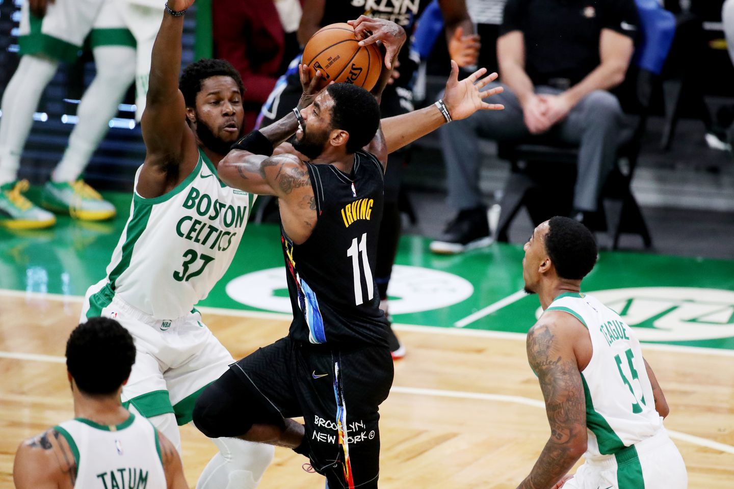 Face à ses anciens coéquipiers, Kyrie Irving a sorti un très grand match. L’un des plus propres depuis bien longtemps avec ses 37 points en 33 minutes à 13 sur 21 aux tirs, dont 7 sur 10 à 3-points, avec 8 passes et 6 rebonds. Et seulement une balle perdue. Un Kyrie Irving facile face à Marcus Smart ou Jaylen Brown qui sont pourtant de grands défenseurs, et qui le connaissent par coeur. La présence de Kevin Durant lui libère de l’espace et il sanctionne à 3-points, même de très loin. Pas besoin d’en faire trop. Pas besoin de dribbler longtemps. Il suffit juste d’identifier la faille et de frapper. Pas de quoi pour autant l’enflammer.