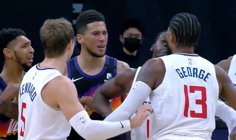 La température est montée envers les deux hommes après que Cameron Payne est retombé sur « PG » qui tentait d'accéder au cercle. Booker est venu dire deux mots à son homologue, qui n'avait visiblement pas apprécié le geste du meneur des Suns. Puis chaque camp est venu séparer les deux protagonistes, sanctionnés par une faute technique chacun.