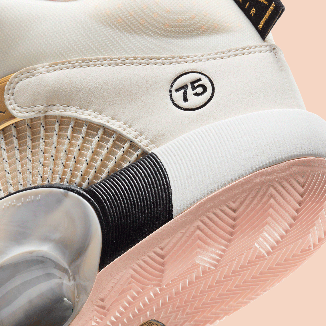 Il y a l’or, le rose, les fleurs, le marbre sur l’Eclipse Plate, les empiècements latéraux façon champagne. Et puis les « 75 » sur les côtés et le « Paname » sur la languette à l’arrière pour le côté street.