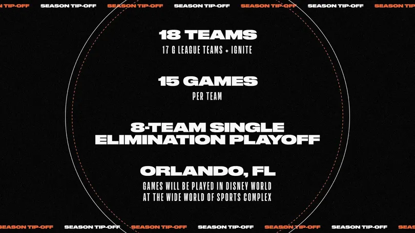 Dix-huit formations seront sur la ligne de départ dont la Team “G-League Ignite”, composée en partie d'anciens lycéens. Chaque équipe disputera 15 matchs de classement. Les huit meilleures se retrouveront ensuite pour des playoffs avec match à élimination directe. Contrairement à une saison traditionnelle, la “G-League Ignite” pourra se qualifier pour les playoffs “en raison des circonstances uniques de cette année”, précise le communiqué.