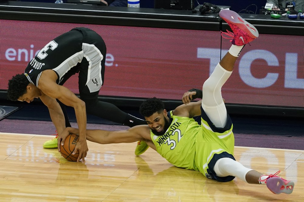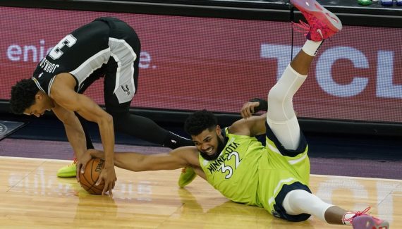 Sévèrement blessé au poignet gauche il y a deux semaines, mal retombé après un duel en haute altitude avec Rudy Gobert, Karl-Anthony Towns a un peu précipité son retour, effectué cette nuit face aux Spurs. Avec une seule main valide, et une main gauche qu’il n’a pratiquement pas utilisée, protégée par une grosse attelle, l’intérieur a fait le job en compilant 25 points et 13 rebonds. Il n’a manqué que la victoire pour que la soirée soit parfaite.