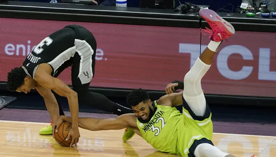 Sévèrement blessé au poignet gauche il y a deux semaines, mal retombé après un duel en haute altitude avec Rudy Gobert, Karl-Anthony Towns a un peu précipité son retour, effectué cette nuit face aux Spurs. Avec une seule main valide, et une main gauche qu'il n'a pratiquement pas utilisée, protégée par une grosse attelle, l'intérieur a fait le job en compilant 25 points et 13 rebonds. Il n'a manqué que la victoire pour que la soirée soit parfaite.