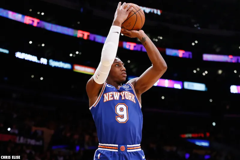 Si bien qu'avec son énorme temps de jeu, sa moyenne de points a légèrement augmenté cette saison, mais pas son adresse. RJ Barrett affiche un très moyen 36.5% de réussite, dont 18% de loin. Ces pourcentages chutent même à 30%, dont… 6% à 3-points (1/16), depuis quatre matches.