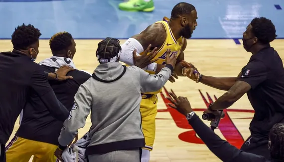 Preuve que tout va bien et que cette rencontre dans le Texas a été une promenade de santé, le shoot primé de LeBron James en deuxième quart-temps. Les Lakers mènent alors 24-45. L'ailier reçoit la balle dans le corner, il hésite à shooter et feinte dans un premier temps. Le banc s'était levé et Dennis Schroder décide de le défier.