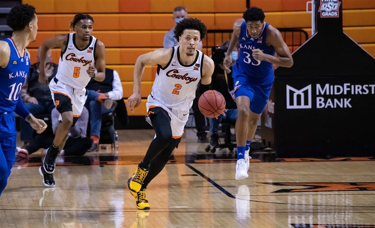 Bref, tout allait bien. Mais, après avoir compté 16 points d’avance à 9 minutes du terme, OSU s’est pris une rafale des Jayhawks, un cinglant 21-2, porté par David McCormack (qui finira à 24 points, son record cette saison, plus 12 rebonds), le tombeur d’Oklahoma récemment.