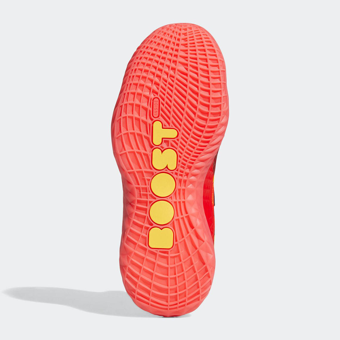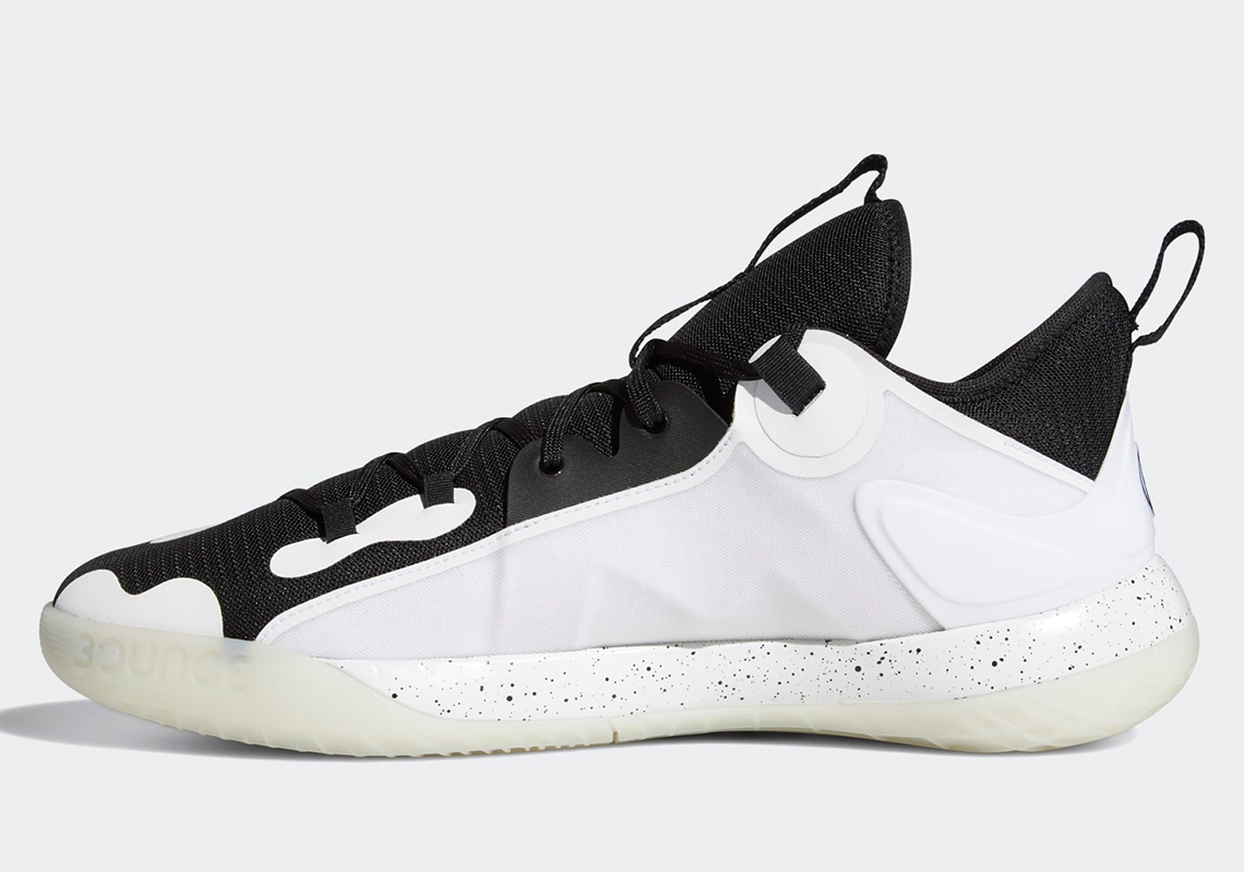 On remarque la filiation entre les deux modèles au niveau de la silhouette, mais on ne retrouve évidemment pas le chausson moulé en un seul tenant « Futurenatural », grande promesse de la Harden Vol.5. L’amorti est composé d’une semelle intermédiaire Bounce et une semelle extérieure en caoutchouc. Mais la paire reste prometteuse.