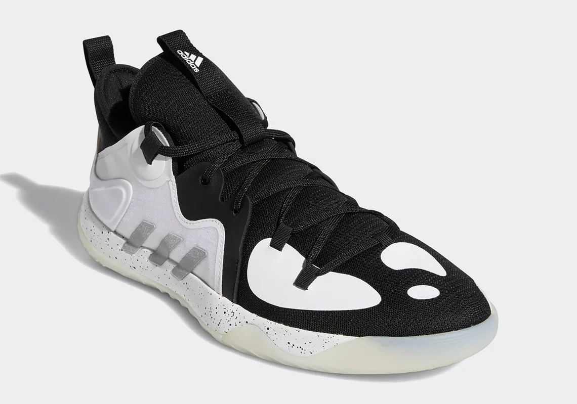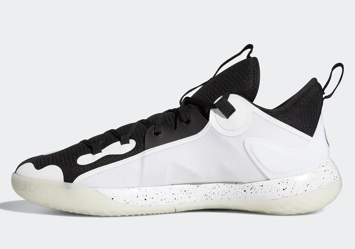 On remarque la filiation entre les deux modèles au niveau de la silhouette, mais on ne retrouve évidemment pas le chausson moulé en un seul tenant « Futurenatural », grande promesse de la Harden Vol.5. L'amorti est composé d'une semelle intermédiaire Bounce et une semelle extérieure en caoutchouc. Mais la paire reste prometteuse.
