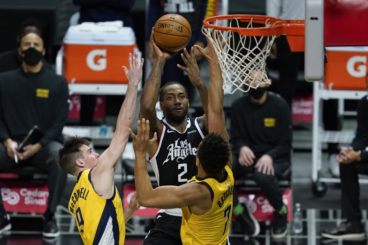 Aux côtés de Leonard, Paul George et Luke Kennard (20 points) font aussi payer des Pacers qui n’ont aucune réponse pour défendre sur les extérieurs californiens.