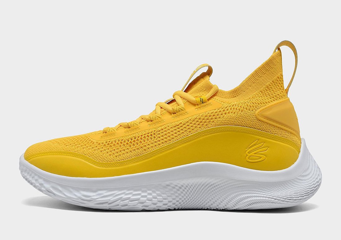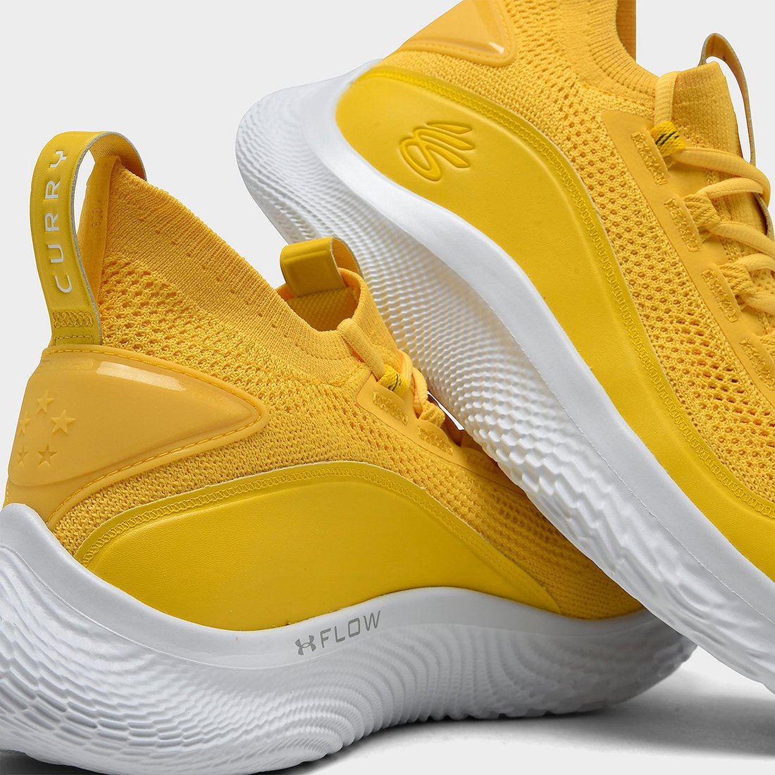 Après le rouge, le noir, le blanc et doré, ou l’arc-en-ciel, Curry Brand va enfin sortir une Curry 8 clin d’œil aux Warriors. Pour 160 euros, les fans de Golden State et de son double MVP pourront dès vendredi prochain s’acheter cette paire jaune qui garde sa semelle blanche.