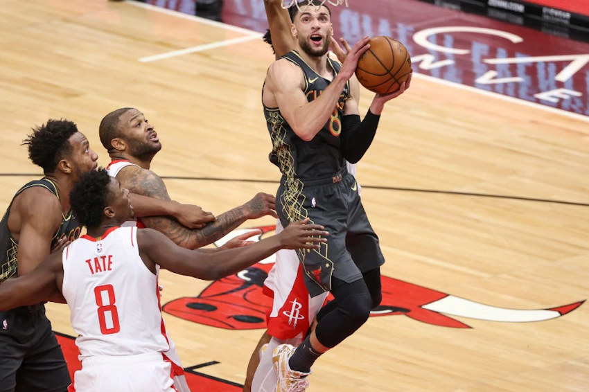 Houston n’abdique pas et garde la même formule pour revenir au score en troisième quart. Wood part à l’aventure sur son dribble en transition mais il s’en sort bien avec une volte bien sentie. Les Rockets reviennent à 3 longueurs seulement des Bulls avec Oladipo qui n’hésite pas à envoyer les tirs pour sa première sous ses nouvelles couleurs.