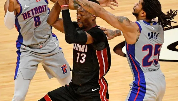 Wayne Ellington, Mason Plumlee et Jerami Grant s'amusent au début de ce match reporté de quelques heures à cause du protocole lié au Covid-19 : les trois Pistons passent un 12-2 qui force Erik Spoelstra à prendre le premier temps-mort de la partie après moins de 4 minutes.