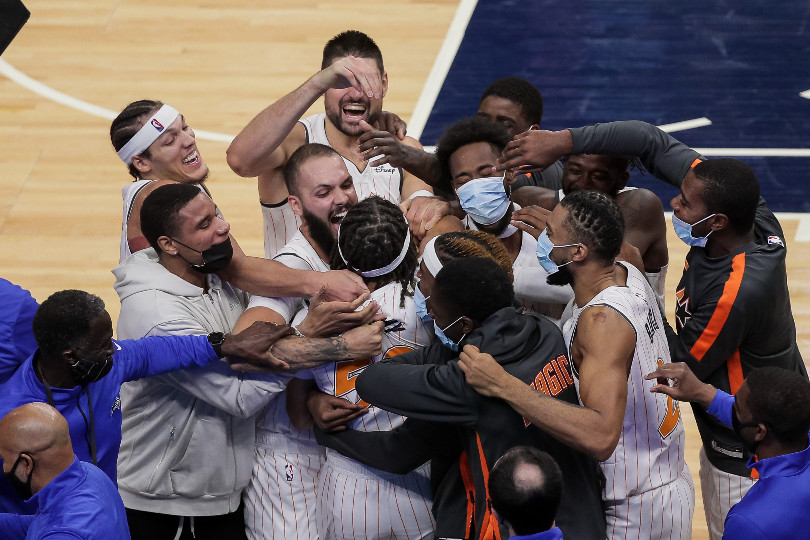 Derrière le métronome Nikola Vucevic (28 points), Evan Fournier a apporté ce soutien offensif qui faisait défaut au pivot, permettant en prime d’enlever de la pression des épaules du rookie Cole Anthony, auteur de 13 points à 5/7 au tir, dont le panier de la gagne au buzzer.