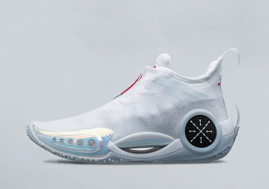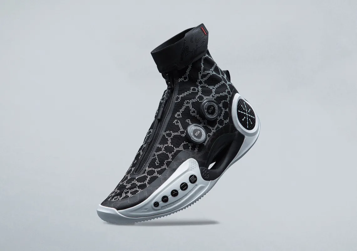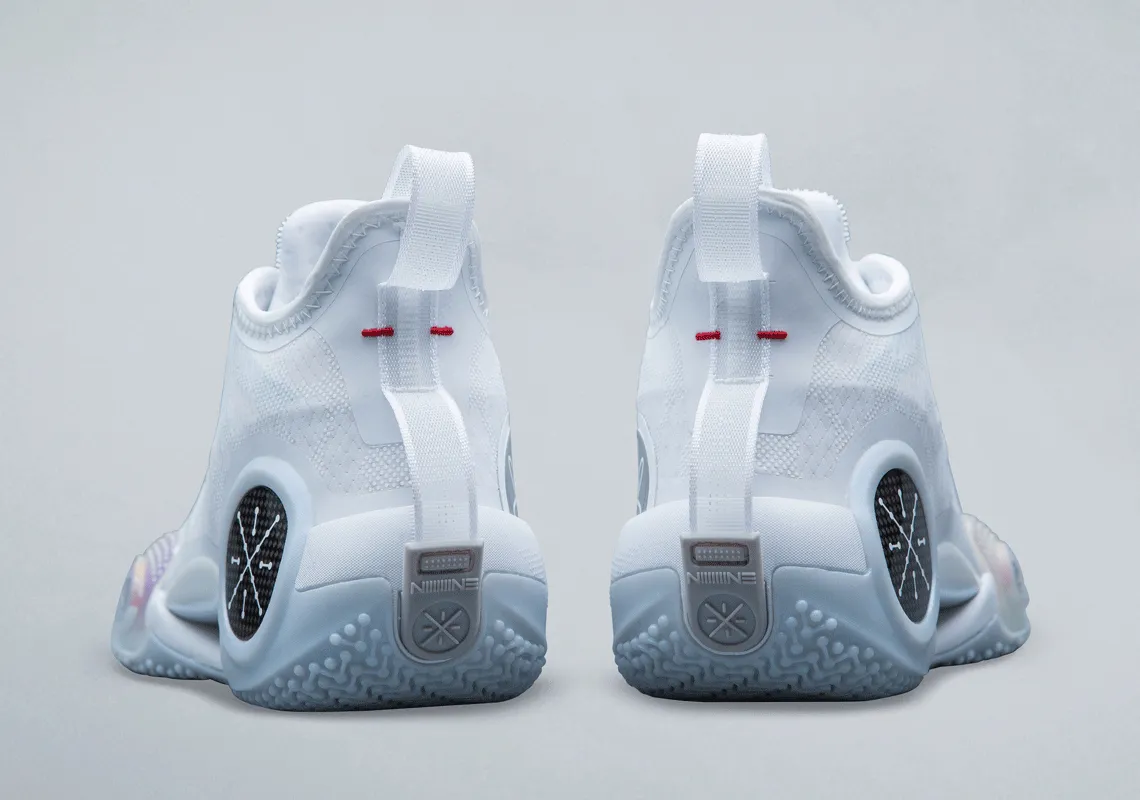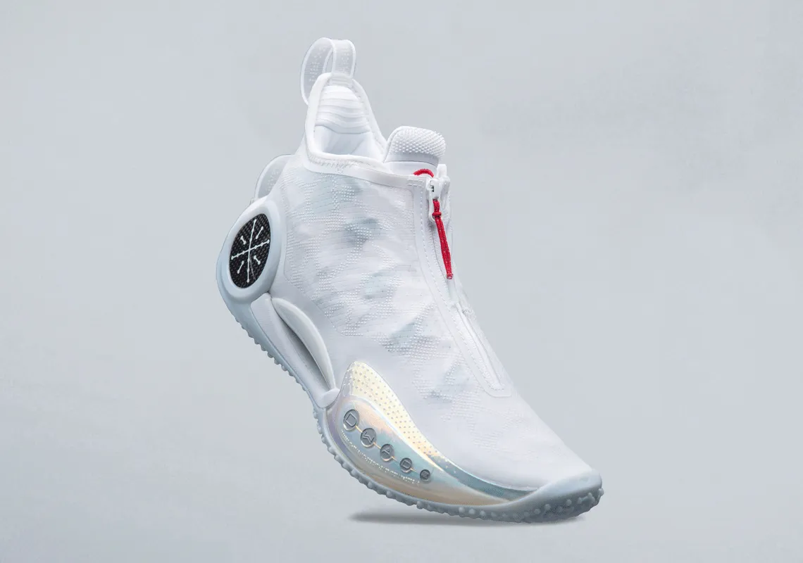 Le zip de la PG4, l'Eclipse Plate de la Jordan 34, la chaussette de la Jordan 28 : les inspirations de Li-Ning sont confirmées par les visuels officiels de la Way of Wade 9 dans une version basse blanche, et deux versions hautes, une blanche et une noire.