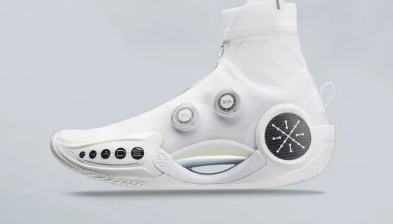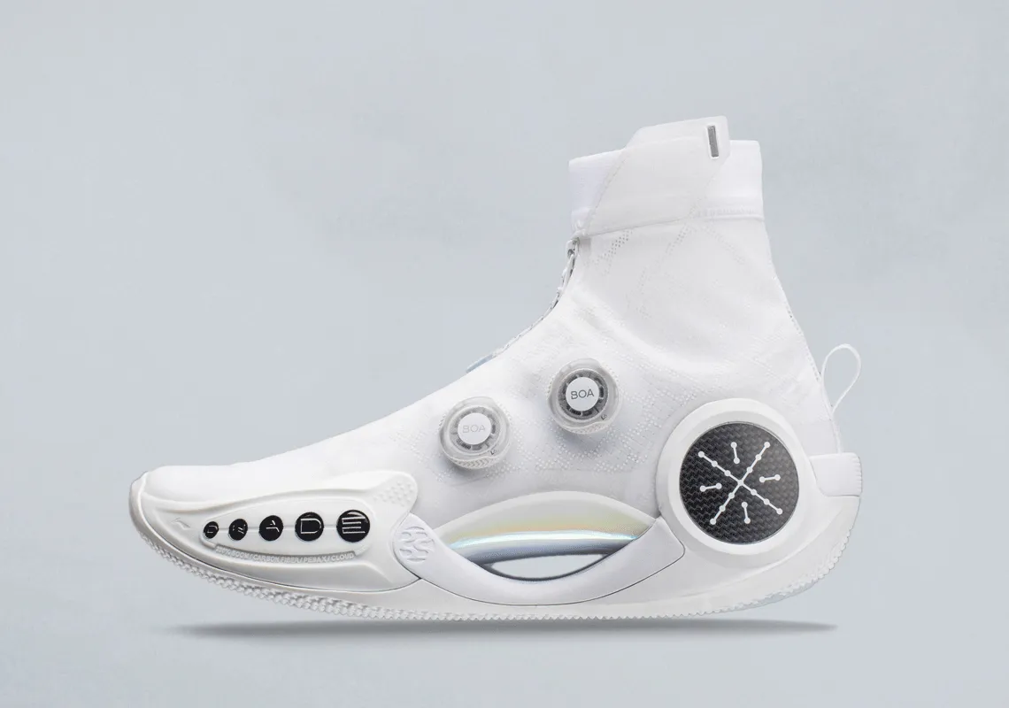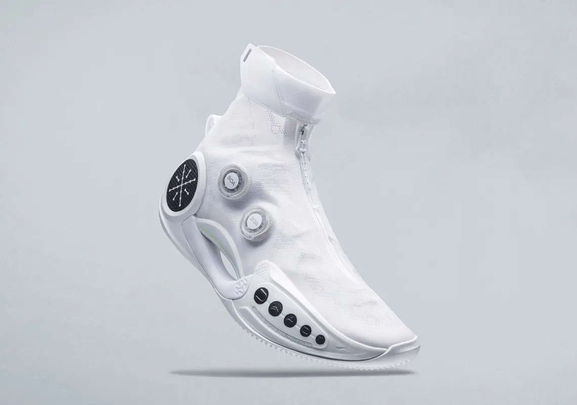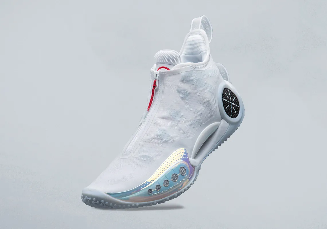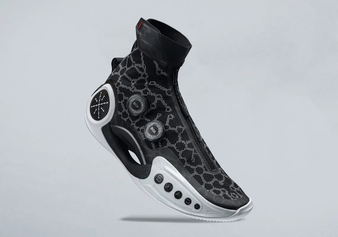 Le zip de la PG4, l'Eclipse Plate de la Jordan 34, la chaussette de la Jordan 28 : les inspirations de Li-Ning sont confirmées par les visuels officiels de la Way of Wade 9 dans une version basse blanche, et deux versions hautes, une blanche et une noire.