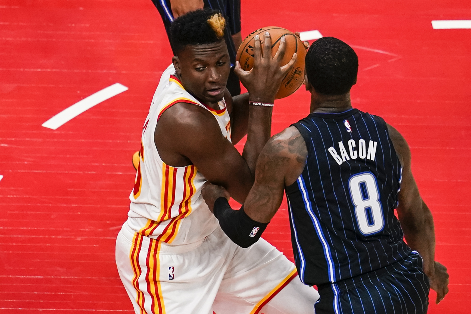 | 2021-22 | ATL | 74 | 27:35 | 61.3 | 0.0 | 47.3 | 3.8 | 8.1 | 11.9 | 1.2 | 2.2 | 0.7 | 0.6 | 1.3 | 11.1 |