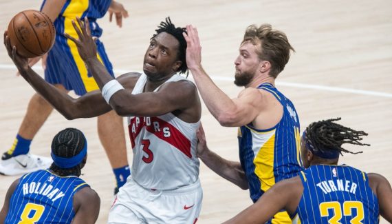Le pivot remet ça, Onunoby lui répond de loin, Turner l’imite : Indiana est à une longueur à 90 secondes de la fin. Toronto manque encore deux lancers, mais garde l’avantage et VanVleet sort une défense décisive sur Brogdon à 20 secondes de la fin. Anunoby marque ses deux lancers, et derrière, Sabonis se fait contrer coup sur coup par Chris Boucher puis Stanley Johnson. Toronto arrache ce match grâce à sa défense (107-102). Revanche entre les deux équipes dès demain soir.