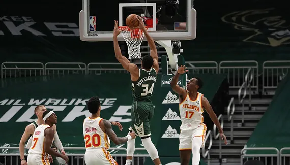 Portis est déchaîné, et Danilo Gallinari manque de rythme et de matches pour lui répondre. En face, le retour des titulaires n'arrange pas les affaires des Hawks, et Donte DiVincenzo fait beaucoup de bien dans la distribution du jeu, et c'est lui qui trouve Bryn Forbes pour le catch-and-shoot (42-22). Les Bucks prennent le large, et quand DeAndre Hunter s'en va dunker, il se fait bâcher par Antetokounmpo.