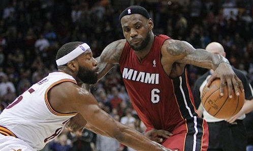 A 5 minutes de la fin du troisième quart, on voyait mal comment le Heat pouvait refaire surface, et Pourtant. Mike Bibby sortait un nouveau 3 points pour arrêter le carnage. D-Wade l’imitait coup sur coup et passait un 10-0 à lui tout seul à la défense de Cleveland sur un dunk éclair. Les Cav’s venaient d’encaisser un cinglant 15-1 et retombaient dans leurs travers habituels James prenait le relais pour ramener le Heat à -5, puis répondait à Eyenga auteur d’un tir à 3-points à 1,9 seconde du buzzer. King James prenait la gonfle et envoyait un missile depuis sa moitié de terrain, bingo. Contesté à cause d’une erreur de chrono, la prière de Lebron était finalement accordée (75-70).