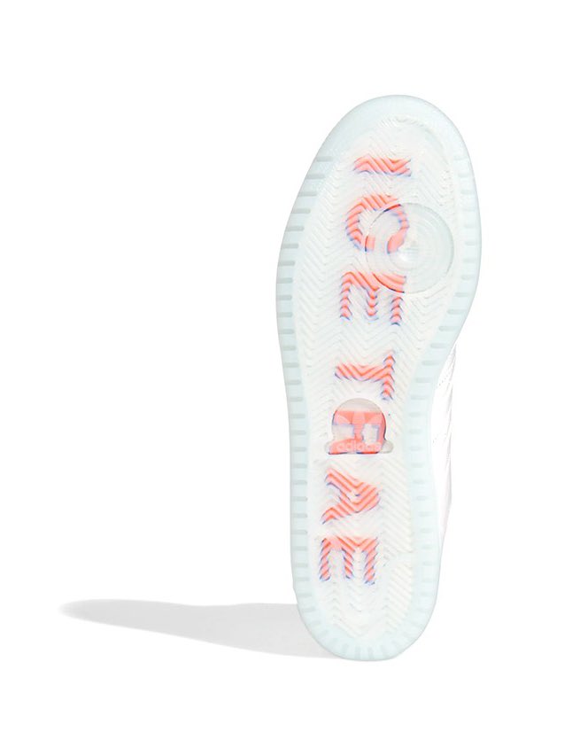L’ensemble est blanc, mis en valeur par une touche de orange sur le haut de l’empeigne avec son numéro 11, et sous la semelle transparente en mode glace où est inscrit « Ice Trae », son surnom.