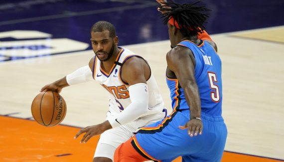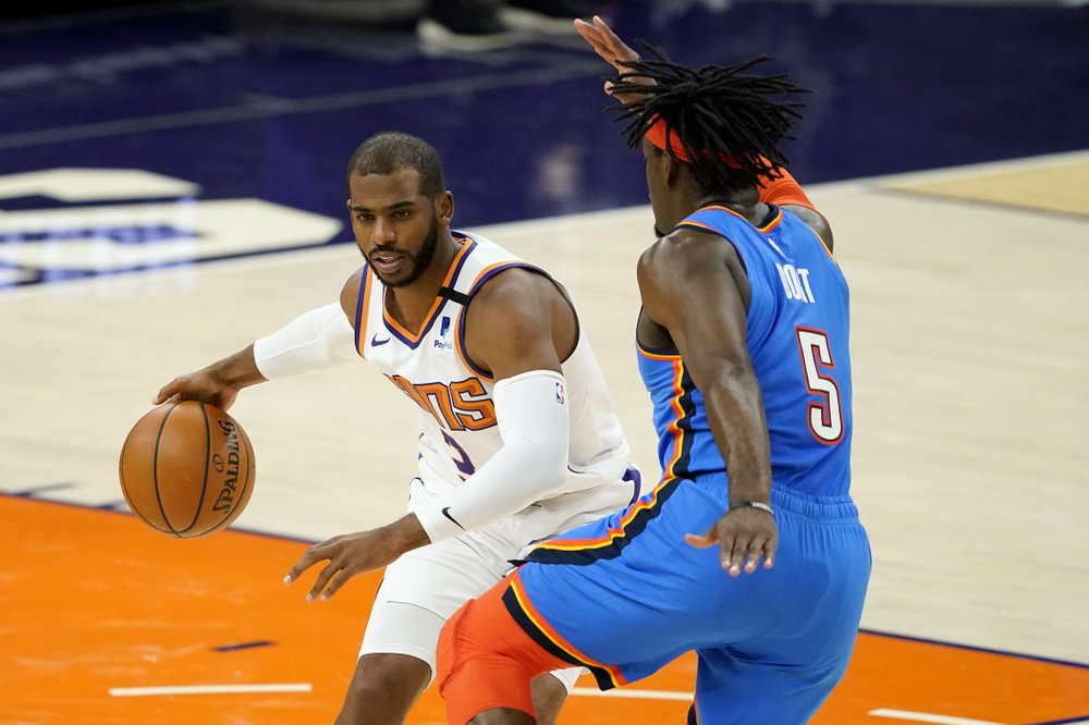Sur deux défaites de rang, les Suns démarrent mieux. Avec Chris Paul et Cameron Johnson, Phoenix débute sur un 10-3 initial, alors que le Thunder rate 6 de ses 7 premiers tirs. Le premier quart semble même totalement en faveur des locaux, alors que Jevon Carter rentre un 3-points difficile en fin de possession, avant un dunk de Mikal Bridges.