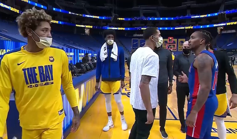 Le « garbage time » entre Warriors et Pistons venait de se terminer et tous les protagonistes se dirigeaient vers les vestiaires. Tous sauf Rodney McGruder, venu « s’expliquer » avec Juan Toscano-Anderson.