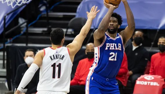 Plus efficace offensivement avec ses meilleurs pourcentages en carrière, dont un bond de 48 à 55% de réussite aux tirs, et plus de lancers-francs que jamais, Joel Embiid a également progressé défensivement depuis l'arrivée de Doc Rivers. De 4 fautes commises en moyenne en carrière, il tourne cette saison à moins de 3. Plus raisonnable et plus en retenue, le pivot star des Sixers peut rester sur le terrain un peu plus longtemps, et surtout se préserver pour les derniers quarts-temps, durant lesquels Philadelphie est tout simplement la meilleure équipe de la Ligue, avec un différentiel positif de plus de 12 points dans ces ultimes périodes. S'il contre peut-être un peu moins que par le passé (1.3 contre seulement, comme la saison passée), Joel Embiid est pour le coup plus efficace dans la contestation des tirs adverses. En fait, ses adversaires shootent à moins de 38% de réussite en dernier quart-temps quand le pivot rôde. Le rempart ultime ! Il faut dire que la routine de son intersaison a été plutôt exigeante, voire draconienne. Ça consistait à faire de la vidéo d'abord, pour observer et décortiquer un mouvement en particulier. Puis de le mettre en pratique sur le terrain, dans un premier temps sur demi-terrain, puis enchaîner avec des courses de chaque côté du terrain dans un deuxième. La dernière étape était de reproduire ce mouvement, le plus précisément possible, mais en s'envoyant des sprints pleine balle entre les deux paniers, en ajoutant parfois un défenseur sur ses remontées de terrain balle en main. Sans rééducation ou période de repos à observer, pour la première fois de sa carrière, Joel Embiid et son équipe ont pu se donner à fond, sans arrière-pensée… “On bossait jusqu'à ce qu'il n'en puisse plus en gros”, expliquait Drew Hanlen pour Five Thirty Eight. “Parfois, je me faisais, non pas insulter, mais on me disait que l'on chargeait un peu trop. Mais c'était lui qui voulait continuer à bosser.”La prochaine étape : les passes