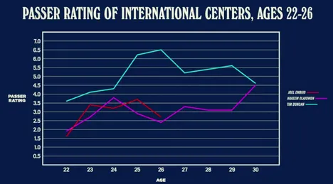 À voir sa réussite actuelle, un brin revanchard à 29 points, 11 rebonds, 3 passes, plus d'une interception et un contre par match, Joel Embiid a bien retenu la leçon. L'ancien colosse aux pieds d'argile est désormais une machine de guerre parfaitement préparée pour durer, et briller quand ça compte, dans le “crunch”. “S'il est dans une meilleure posture, alors il joue avec ses hanches plus bas, il est dans une meilleure position pour tirer”, ajoute Drew Hanlen. “Quand il part en dribble, il est plus bas sur ses appuis aussi et il peut mieux absorber les chocs et avancer malgré les contacts. Il ne s'agit pas de lui permettre de courir plus longtemps, mais plutôt de courir dans une meilleure position pour faire ce qui fait de lui un grand joueur. Maintenant, il arrive à rester dans cette posture pendant tout le match.” Mieux entouré (de shooteurs) grâce à l'efficacité de Daryl Morey qui n'a pas tardé à se mettre en action dans la cité de l'amour fraternel, Joel Embiid rayonne cette saison. Dans une vidéo récemment publiée par The Ringer, le pivot camerounais est comparé à Hakeem Olajuwon et Tim Duncan, deux intérieurs qui ont construit leur carrière sur leurs prouesses défensives, leur jeu de jambes et leurs fondamentaux impeccables, mais aussi sur leur jeu face au panier au poste bas.![]()