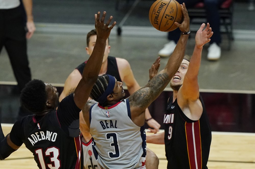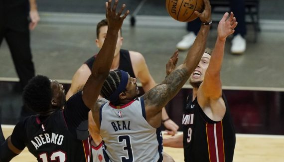 Forcément, sans l’impact du meilleur scoreur de la ligue, c’est très compliqué pour Washington, qui voit Kendrick Nunn et Tyler Herro sortir du banc pour faire grimper l’écart en fin de premier quart-temps (40-27).