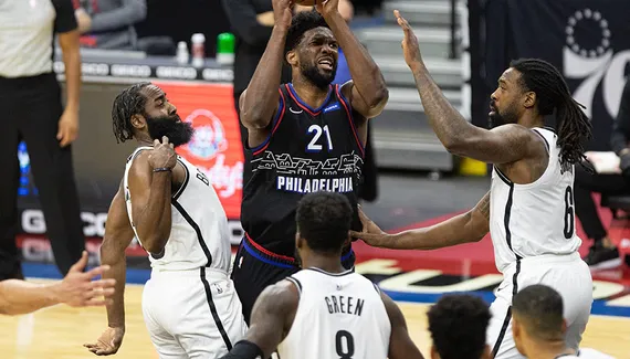 Cela devait être l’affiche de la soirée, et malheureusement, Kevin Durant (quarantaine) et Kyrie Irving (entorse à un doigt) manquent à l’appel. Humiliés il y a deux jours face aux Blazers, des Sixers au complet vont tenter de renouer avec la victoire. Ultime rescapé du “Big Three” de Brooklyn, James Harden prend d’entrée les choses en main. C’est lui qui dicte le tempo de cette rencontre et sur pick-and-roll, il se régale. Ce n’est pas facile de contrôler le jeu à deux quand vous affrontez un tel joueur, mais les Sixers ont du répondant.