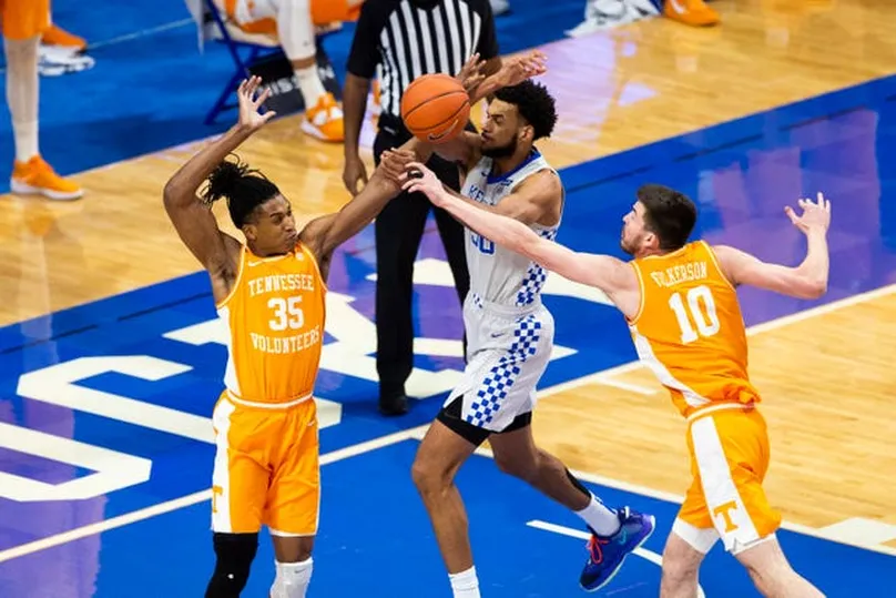 Ce dernier se vengera en contrant à son tour la tentative à 3-points de Keion Brooks Jr, ce qui lancera la contre attaque conclue par Jaden Springer. Mais, après avoir commencé à 2/15 à 3-points, Tennessee a aussi su régler la mire quand ça comptait en réussissant 3/4 pour finir fort. C'est pour le coup Yves Pons qui inscrit ses deux seuls paniers du match pour égaliser à 58 partout.