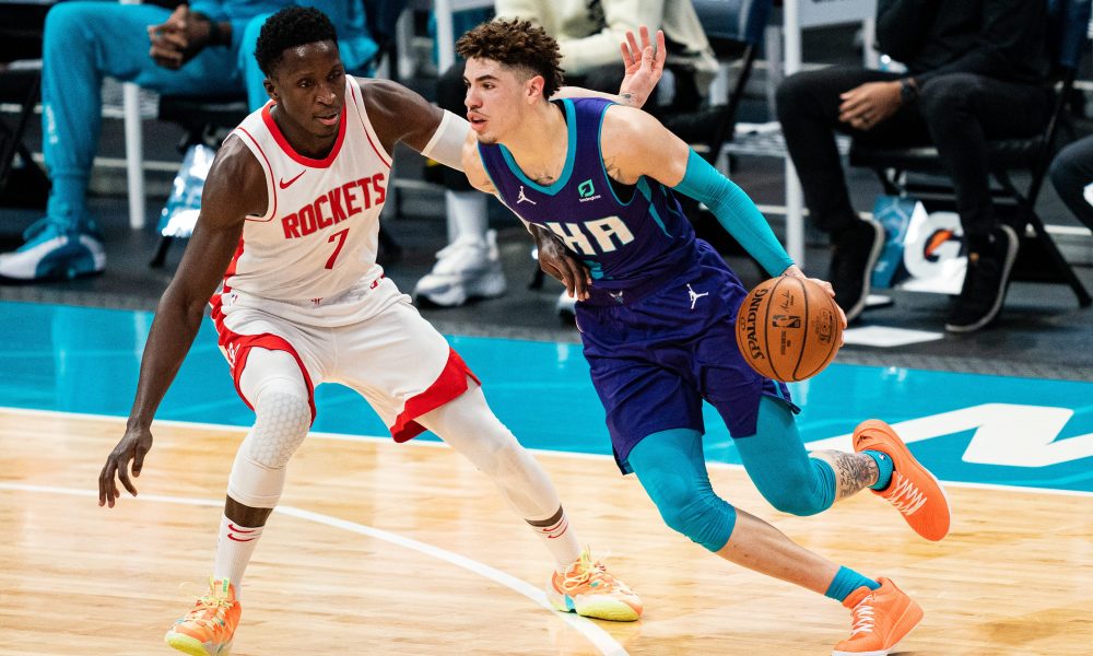 C’est sans son pivot (Christian Wood), son meneur de jeu (John Wall) et son meilleur remplaçant (Eric Gordon) que Houston rend visite aux Hornets. Rapidement, Gordon Hayward prend les choses en main et il forme avec LeMelo Ball une très belle doublette. Les deux hommes se partagent les responsabilités offensives.