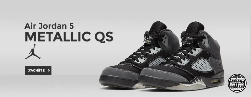 Procurez-vous maintenant sur Basket4Ballers.com les Air Jordan 5 designées par Tinker Hatfield dans un coloris Black Metallic soulignant leurs lignes emblématiques inspirées des avions de chasse.