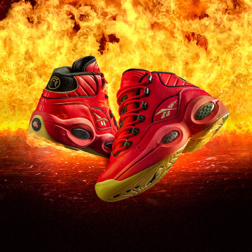 Dans le cadre de ce partenariat, l’équipementier avait sorti à l’automne dernier trois chaussures , dont une Shaqnosis. Cette fois-ci, la firme va dévoiler dans le courant du mois de février une Question Mid épicée en rouge, noir et jaune, ainsi qu’une Classic Leather Legacy blanche avec un imprimé gouttes d’eau pour se rafraîchir.