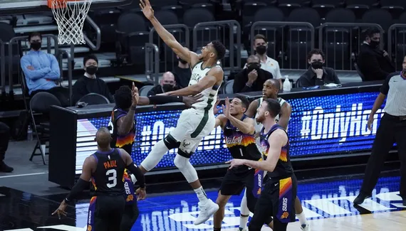 Le pivot de Phoenix est saignant avec 10 points en premier quart, tout comme Giannis Antetokounmpo qui y va aussi de son dunk, à deux mains quant à lui. Les deux équipes sont dans un mouchoir de poche, et ce premier quart très offensif et fluide est plaisant à suivre (32-32).