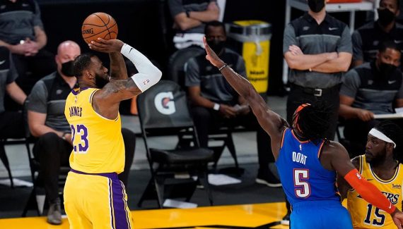 LeBron James plante un missile de loin dans la foulée et on se dit que c’en est fini pour OKC. Mais Al Horford fait de la résistance et Luguentz Dort s’en va passer un dunk en contre-attaque et un 2+1 pour faire redescendre sur terre les joueurs de la cité des Anges (102-103). Après deux lancers d’Al Horford, LeBron James se retrouve à nouveau contraint à l’exploit. Le King ne tremble pas et il inscrit alors le 3-points qui envoie à nouveau les deux équipes en prolongation (105-105) !