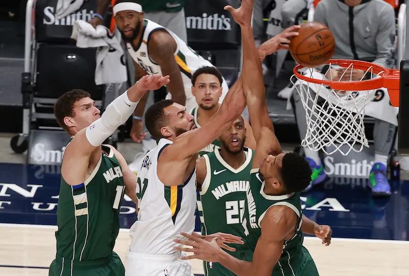 Joe Ingles l'a parfaitement servi sur le « pick-and-roll », Rudy Gobert s'est élevé à deux bons mètres du panier et il est allé écraser un énorme dunk. En chemin vers le cercle, il a croisé la route de Giannis Antetokounmpo qui n'a pu qu'accepter la vengeance du Français, sur lequel il avait dunké il y a quelques années à Milwaukee.