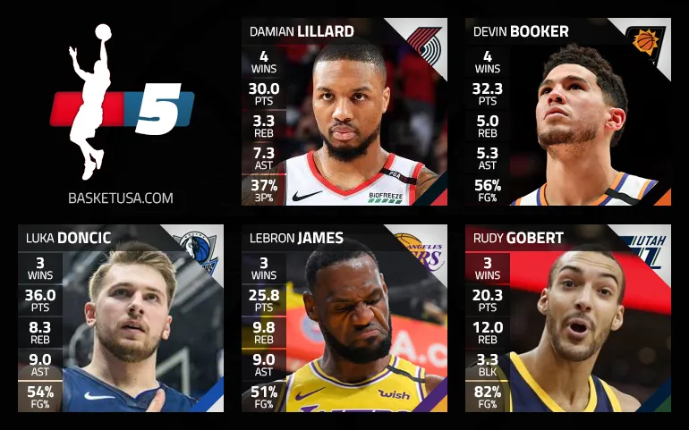 Sous le cercle, on aurait encore pu mettre Nikola Jokic, mais on souhaite quand même à mettre en avant les superbes performances du Jazz et c'est donc Rudy Gobert qui prend la dernière place de ce cinq majeur.