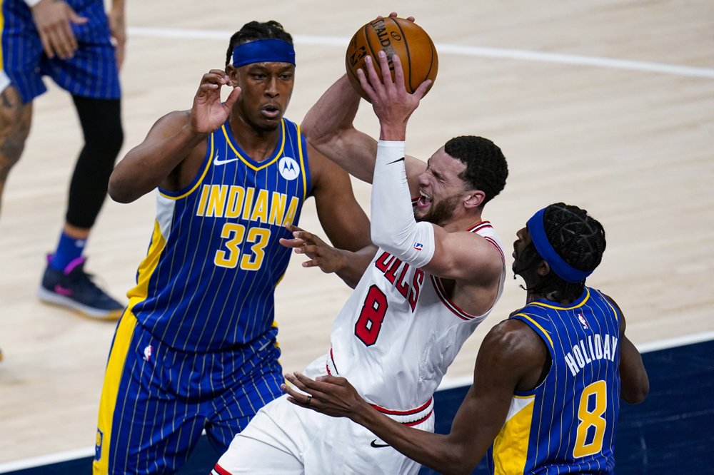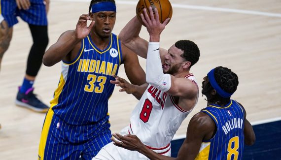 Dans le “money time”, les deux équipes se répondent et chacune passe devant l’autre. Au moment où Malcolm Brogdon et compagnie pensent avoir fait le plus dur, Zach LaVine enfile son costume de sauveur. L’arrière inscrit 12 points dans ce dernier quart-temps et surtout deux gros paniers dans les 90 dernières secondes. D’abord près du cercle, toujours face à Turner. Puis 45 secondes plus tard, à 3-pts, face à Domantas Sabonis. Un énorme shoot.