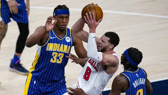 Dans le “money time”, les deux équipes se répondent et chacune passe devant l'autre. Au moment où Malcolm Brogdon et compagnie pensent avoir fait le plus dur, Zach LaVine enfile son costume de sauveur. L'arrière inscrit 12 points dans ce dernier quart-temps et surtout deux gros paniers dans les 90 dernières secondes. D’abord près du cercle, toujours face à Turner. Puis 45 secondes plus tard, à 3-pts, face à Domantas Sabonis. Un énorme shoot.