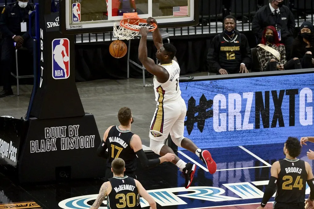 Il y aura bien une timide et rapide réaction de Ja Morant et Dillon Brooks pour ramener les Grizzlies en début de dernier quart-temps. Mais Zion met le point final en fixant les défenseurs avant de trouver J.J. Redick puis Josh Hart à 3-pts. Ensuite, il s'éclate avec un alley-oop, comme une cerise sur le gâteau de sa superbe prestation (31 points à 13/16 au shoot).