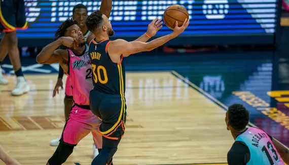 Jimmy Butler, auteur d'un triple double (13 points, 12 rebonds, 11 passes), et Bam Adebayo (24 points, 7 passes, 5 rebonds) avaient pourtant donné jusqu'à 19 points d'avance à Miami mais le Heat n'a rien pu faire face aux 11 points de Kent Bazemore en 4e quart-temps et en prolongation et aux 11 points de Stephen Curry lors des huit dernières minutes, après avoir pourtant débuté le match à 2/15 à 3-points !