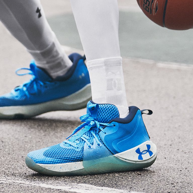 La Embiid 1 possédait déjà un habillage en partie bleu dans sa version aux couleurs des Sixers, mais Under Armour a décidé de l’éclaircir un peu sur ce modèle baptisé « 23.11.3 », en vente à 120 euros sur le site de la marque.
