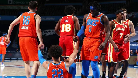 Ne réglez pas votre ordinateur ou votre téléviseur, les Hawks et le Thunder portaient bel et bien quasiment le même maillot lors de l'entre-deux. Du rouge pour Atlanta et du orange pour OKC, et après une mi-temps compliquée, les arbitres ont demandé aux joueurs du Thunder de changer de tenue.