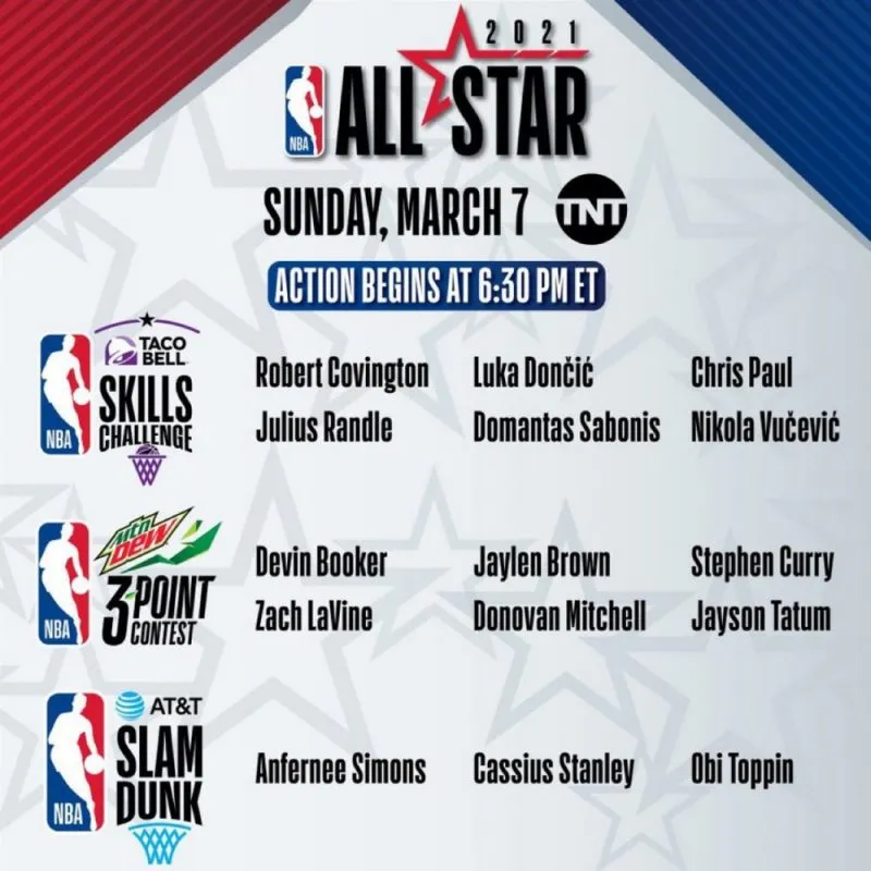 Enfin, en ce qui concerne le Skills Challenge, la NBA a pu enregistrer les présences de cinq All-Stars, accompagnés d'un joueur supplémentaire présent uniquement pour l'occasion. Chris Paul, Luka Doncic, Julius Randle, Domantas Sabonis et Nikola Vucevic, ainsi que Robert Covington, tenteront donc de succéder à Bam Adebayo.